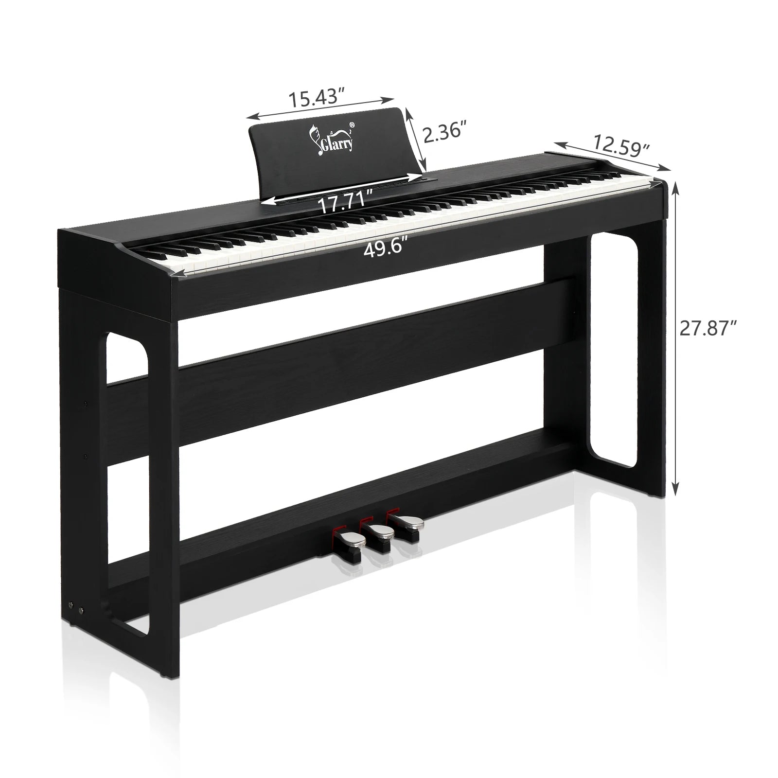 4. Système à 3 pédales : pédale douce-adoucir le ton ; Pédale de sustain - Augmentation continue des longueurs de notes soutenues, de légères à complètes ; Pédale de sostenuto - Appuyez à mi-course sur la pédale pour obtenir un effet d'étouffoir partiel