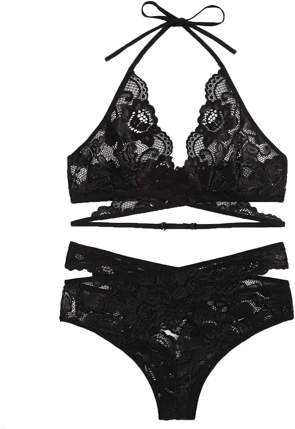 Lace Ultra Thin Underwear Set Sexy Bandage Push Up Bra and Panty 2 Pieces Women's Plus Size Brassiere Hollow Breathable Lingerie