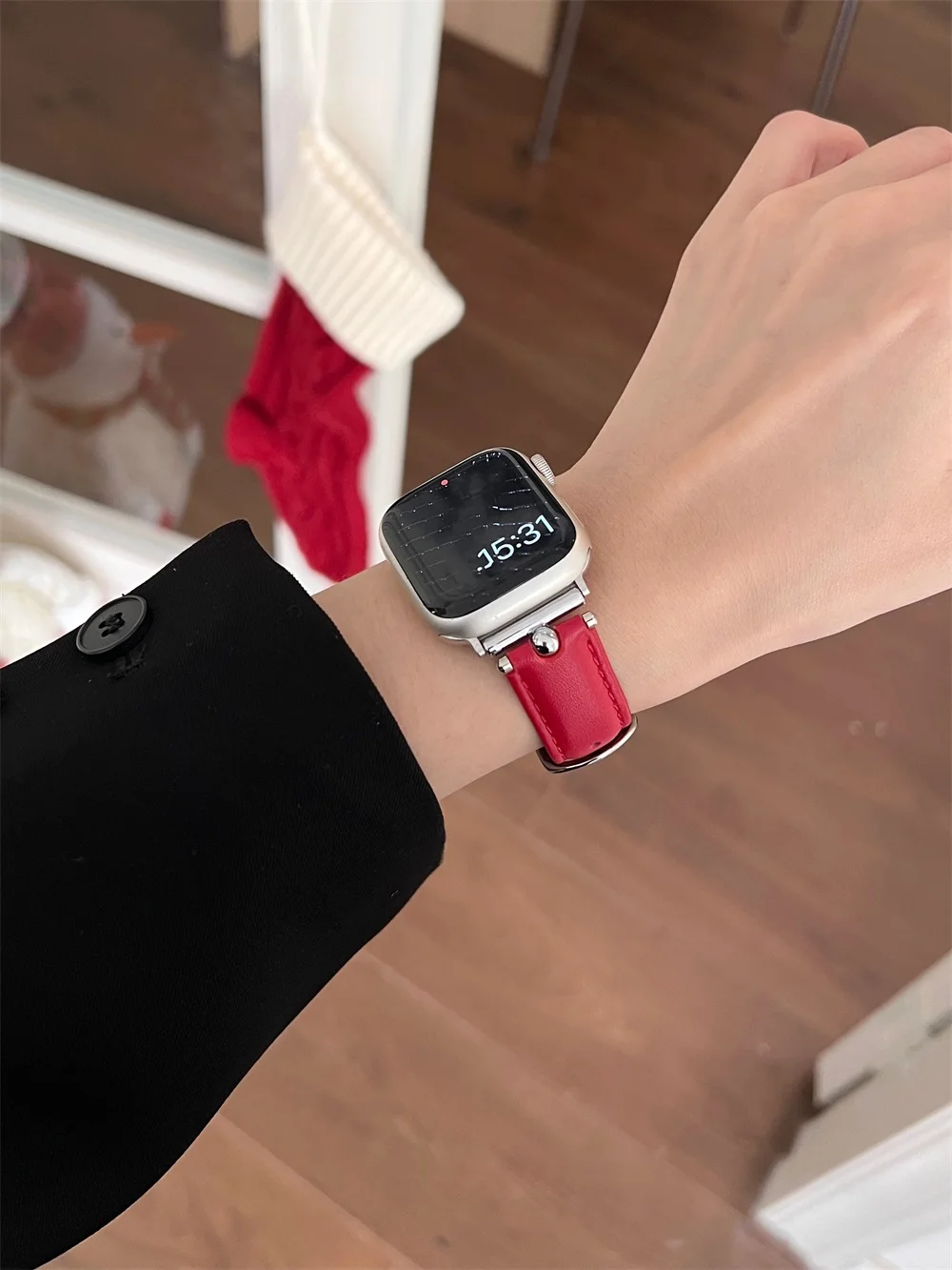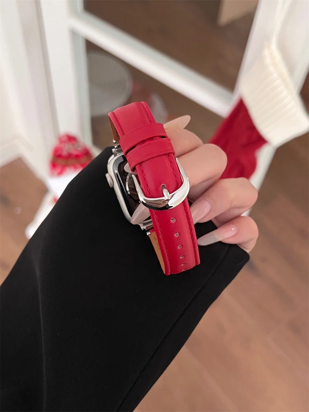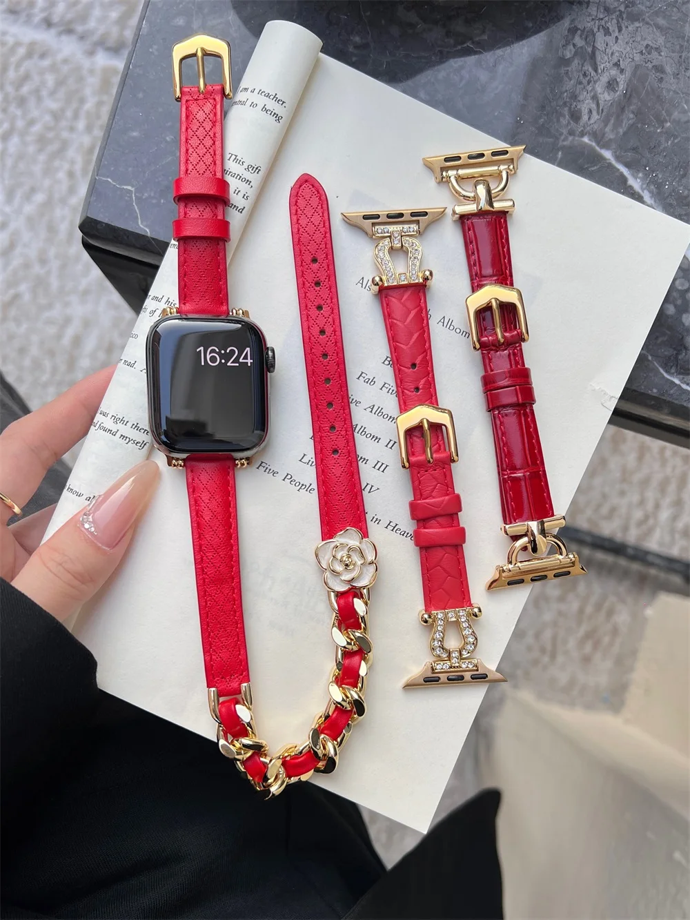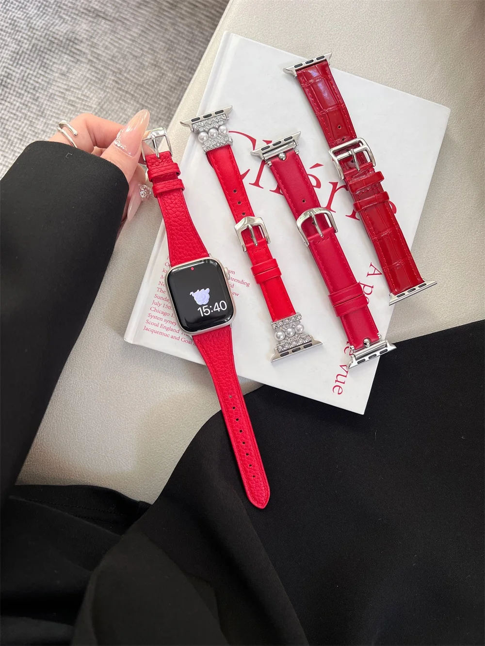 Luxury strap for Apple Watch Band 44mm 45mm 40mm-41mm 42 women Genuine Leather red Bracelet series 8 7 SE 6 5 4 Ultra 49mm bands