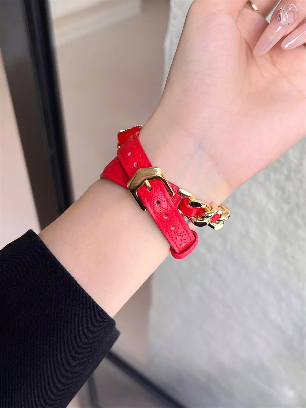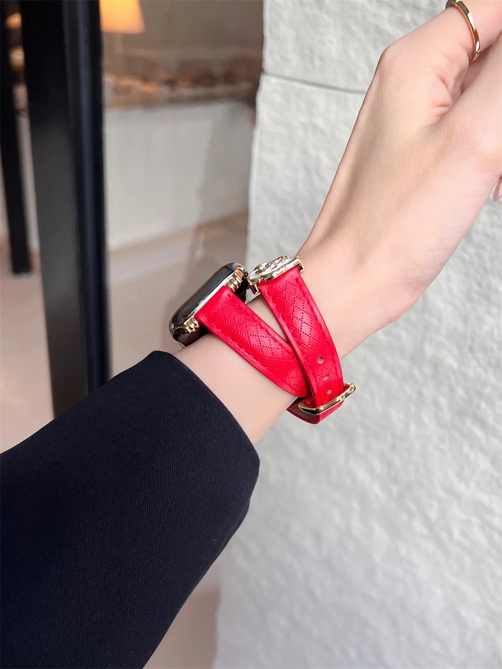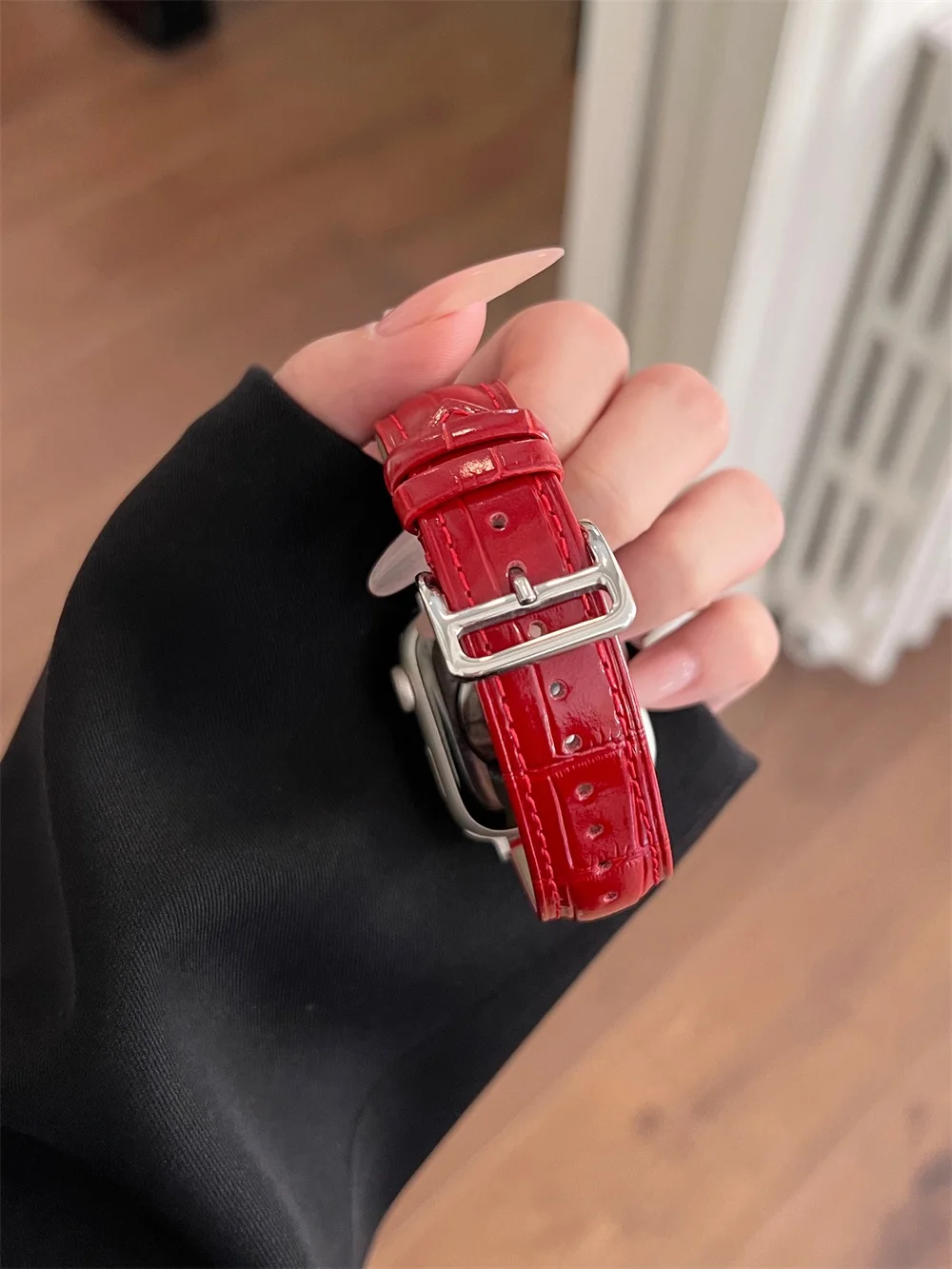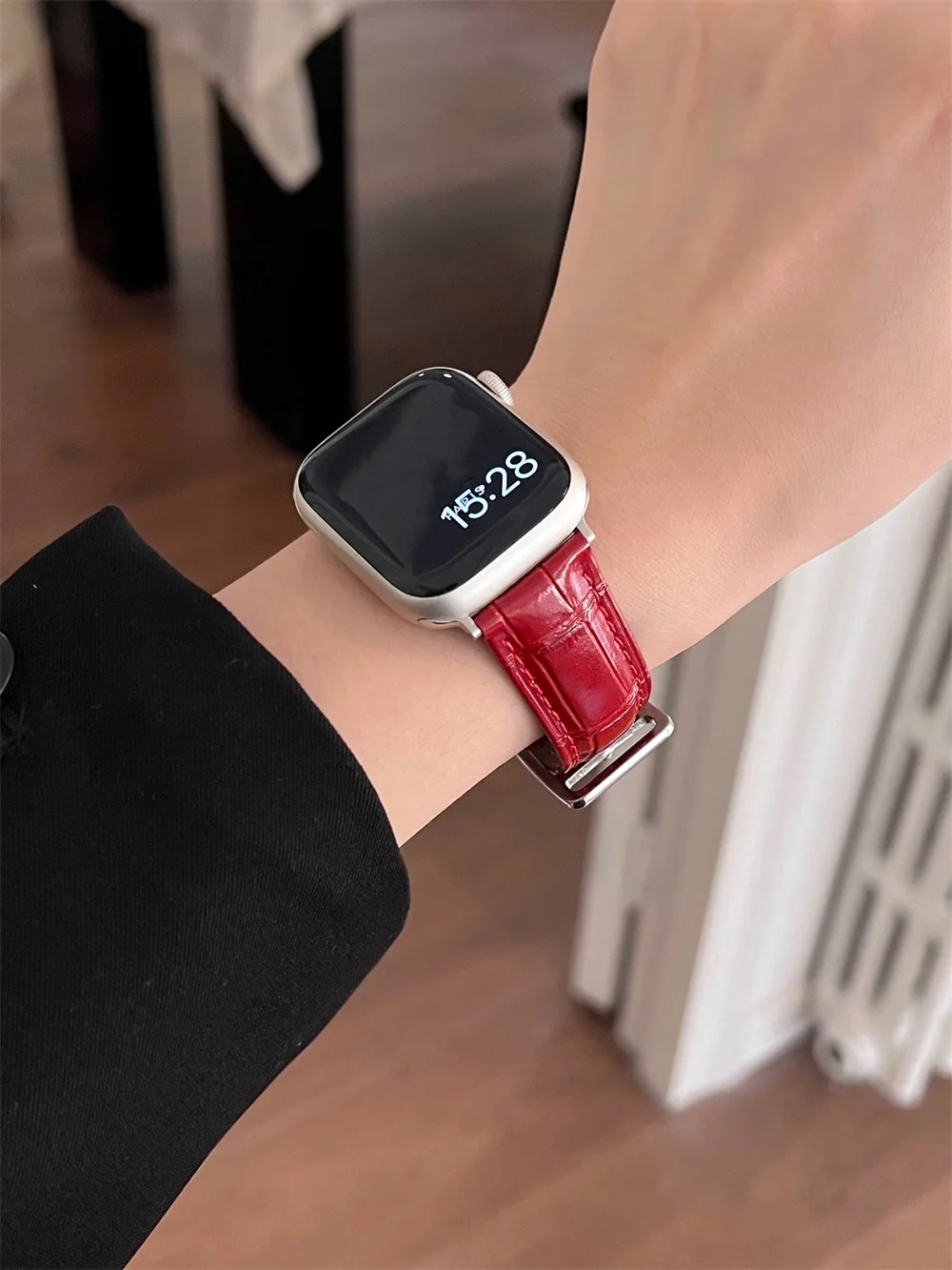 Luxury strap for Apple Watch Band 44mm 45mm 40mm-41mm 42 women Genuine Leather red Bracelet series 8 7 SE 6 5 4 Ultra 49mm bands