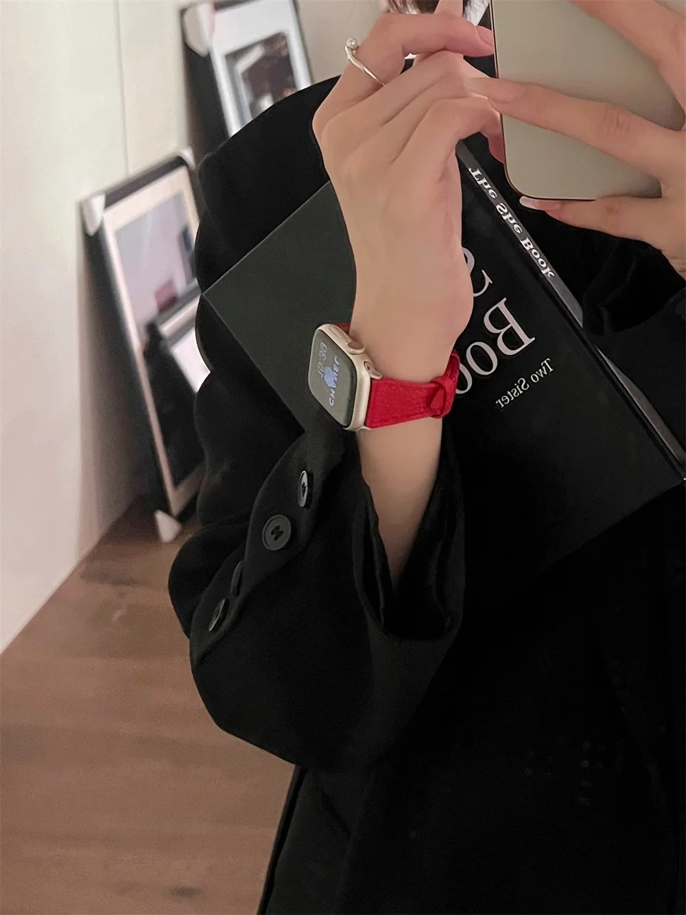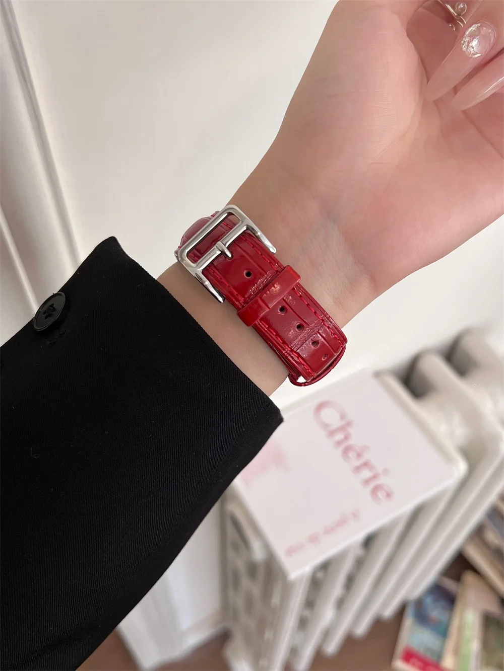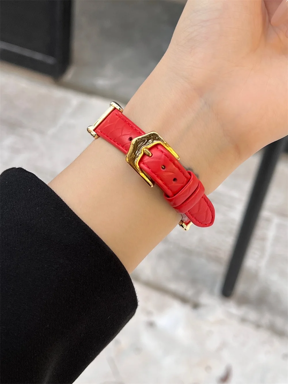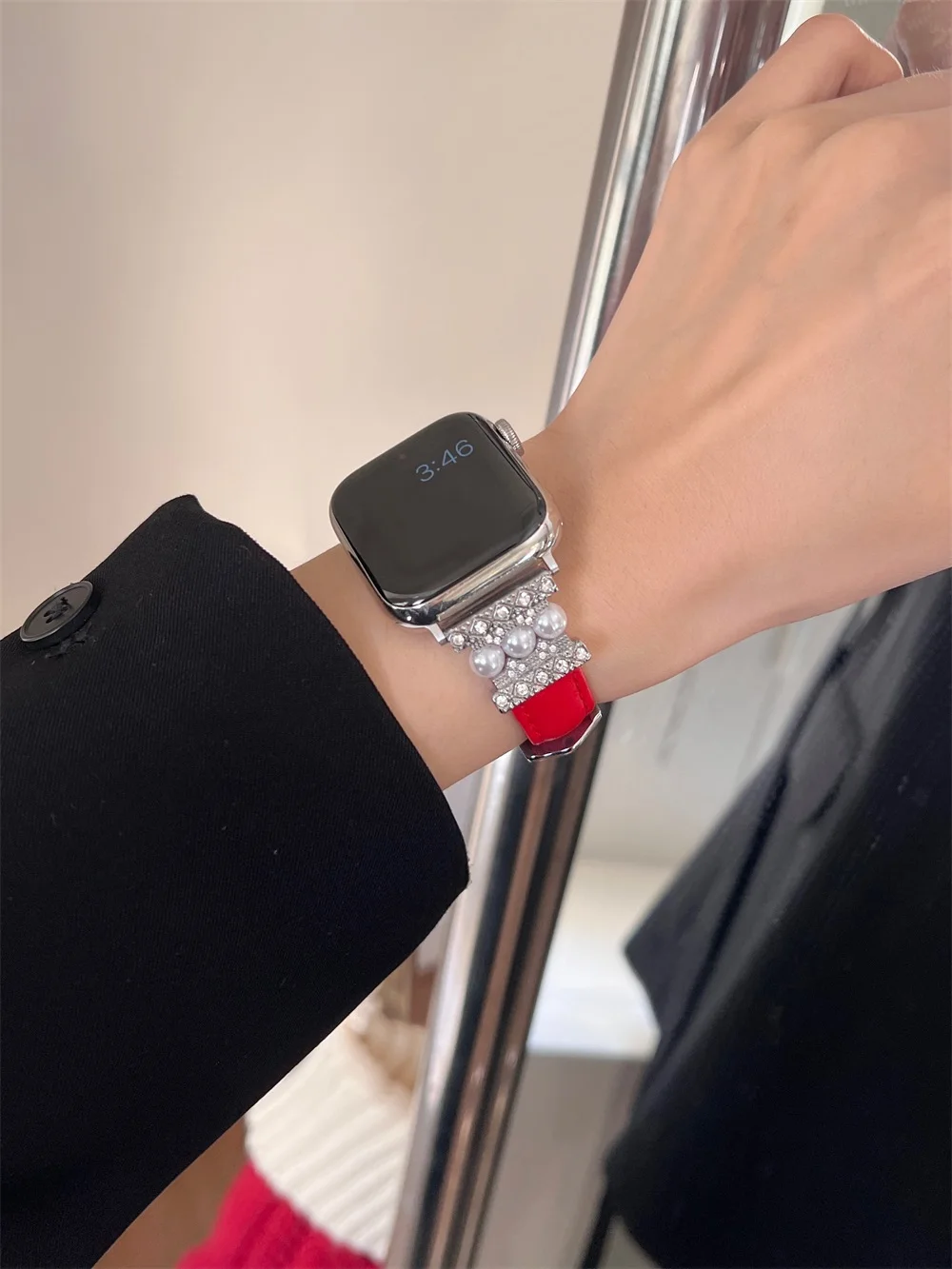 Luxury strap for Apple Watch Band 44mm 45mm 40mm-41mm 42 women Genuine Leather red Bracelet series 8 7 SE 6 5 4 Ultra 49mm bands
