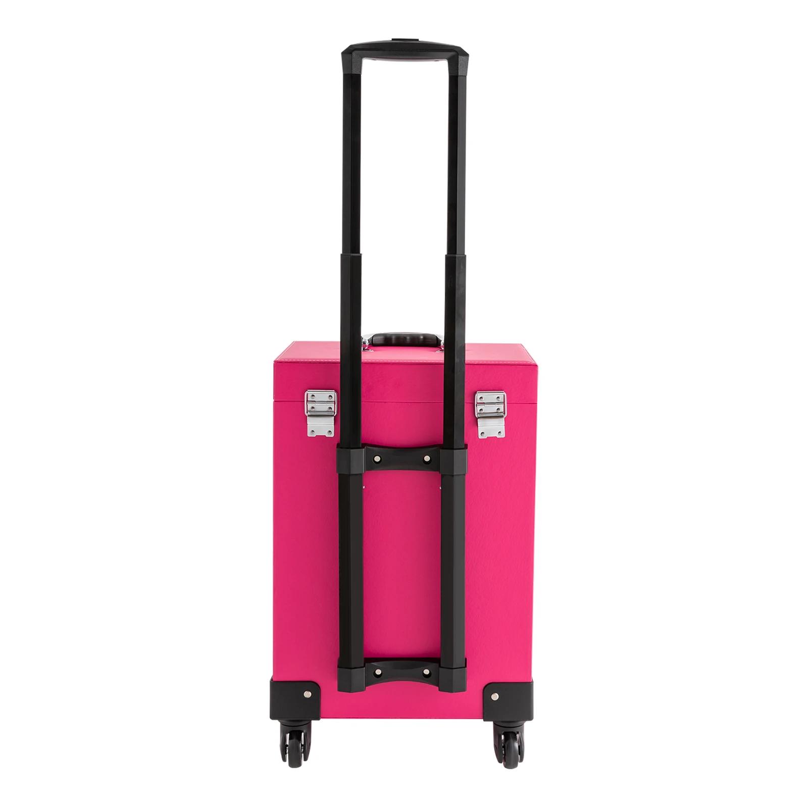 This rolling makeup train case is suitable for professional make-up artists, hairdressers, nail technicians, and beauticians in beauty centers, salons, private homes, parties, and other occasions.