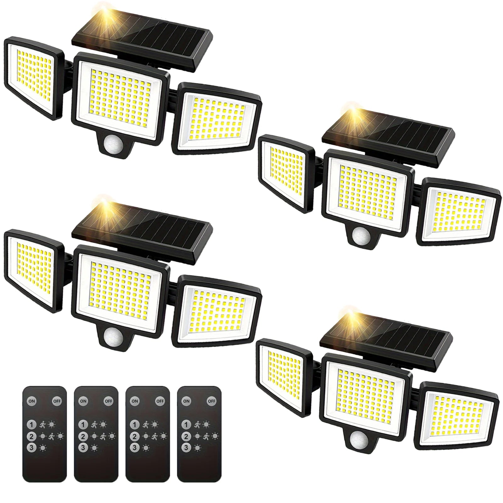 【Remote Control & 3 Lighting Modes】:Each solar motion sensor light is equipped with wireless remote control.You can choose the most suitable mode faster and more portable: ①Strong light sensor mode ② Dim light sensor mode ③Strong long light mode. Different lighting way for your daily requirement.