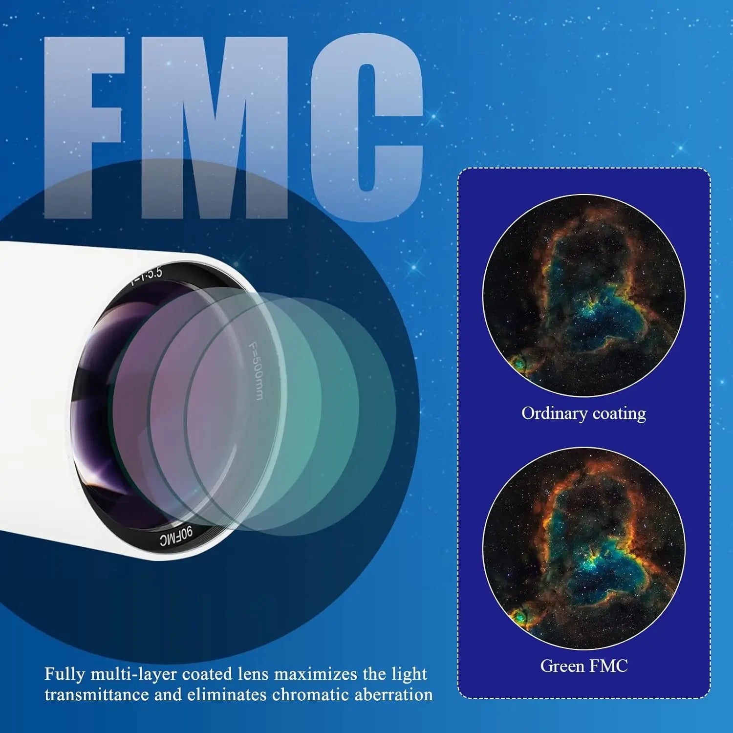 - Wide Field of View: Designed with a focal length of 500mm, this telescope offers an expansive field of view, making it easy to track celestial objects.